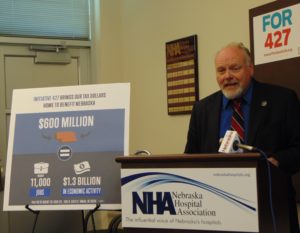 “Medicaid expansion is definitely a difference maker for rural hospitals,” UNK economics professor Allan Jenkins tells reporters during a news conference at the NHA headquarters in Lincoln.